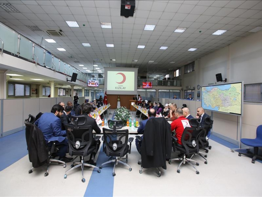 Genel Müdür Dr. İbrahim Altan’ın ev sahipliğinde Etimesgut Yerleşkesini ziyaret eden akademisyenler ve din adamları Kızılay’ın Uluslararası İlişkiler, Uluslararası Programlar, Göç ve Mülteci Hizmetleri, Afet Hizmetleri, Kan Hizmetleri, Sosyal Hizmetler, Gençlik Hizmetleri ve Bilgi Teknolojileri konularındaki çalışmalarını bölüm yetkililerinden dinlediler.